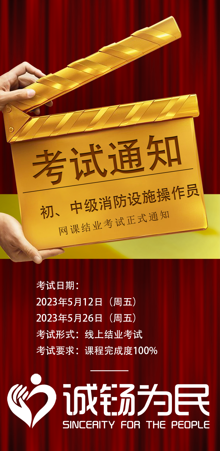 初、中级消防设施操作员 网课结业考试正式通知